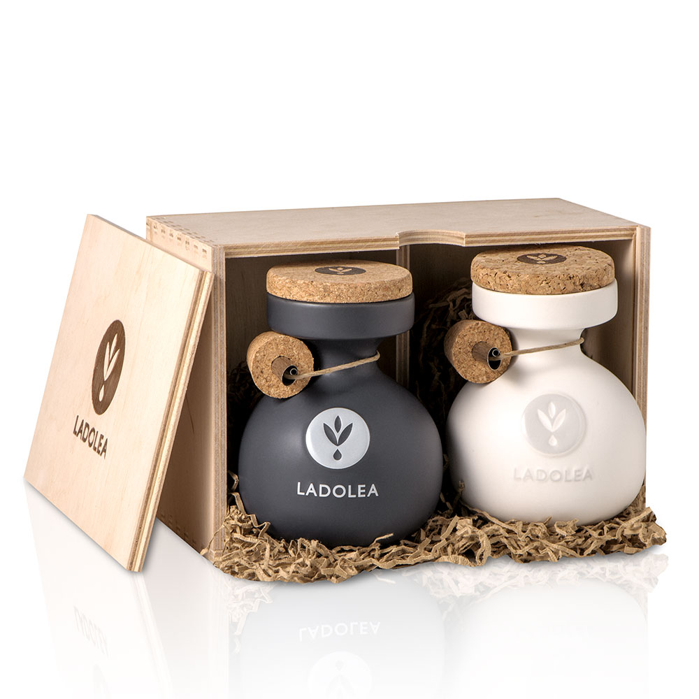 Έντονη φρουτώδες – Μεγαρίτικη Ποικιλία & Απαλή- Πατρινιά μονοποικιλιακή. Το πολυβραβευμένο ελαιόλαδο LADOLEA είναι 100% μονοποικιλιακο και κάθε λάδι παράγεται από διαφορετική ποικιλία ελιών.Το εξαιρετικό παρθένο ελαιολάδο της εταιρείας Ladolea χρησιμοποιείται στο μαγείρεμα αλλά και ωμό, σε σαλάτες, σάλτσες, κ.ά. Είναι ένα αγνό λάδι ελιάς που δεν έχει υποστεί βιομηχανική επεξεργασία. Έχει οξύτητα μικρότερη από 0,8%. Συσκευασία: χειροποίητο κεραμικό δοχείο 200ml. σε ξύλινο κουτί.