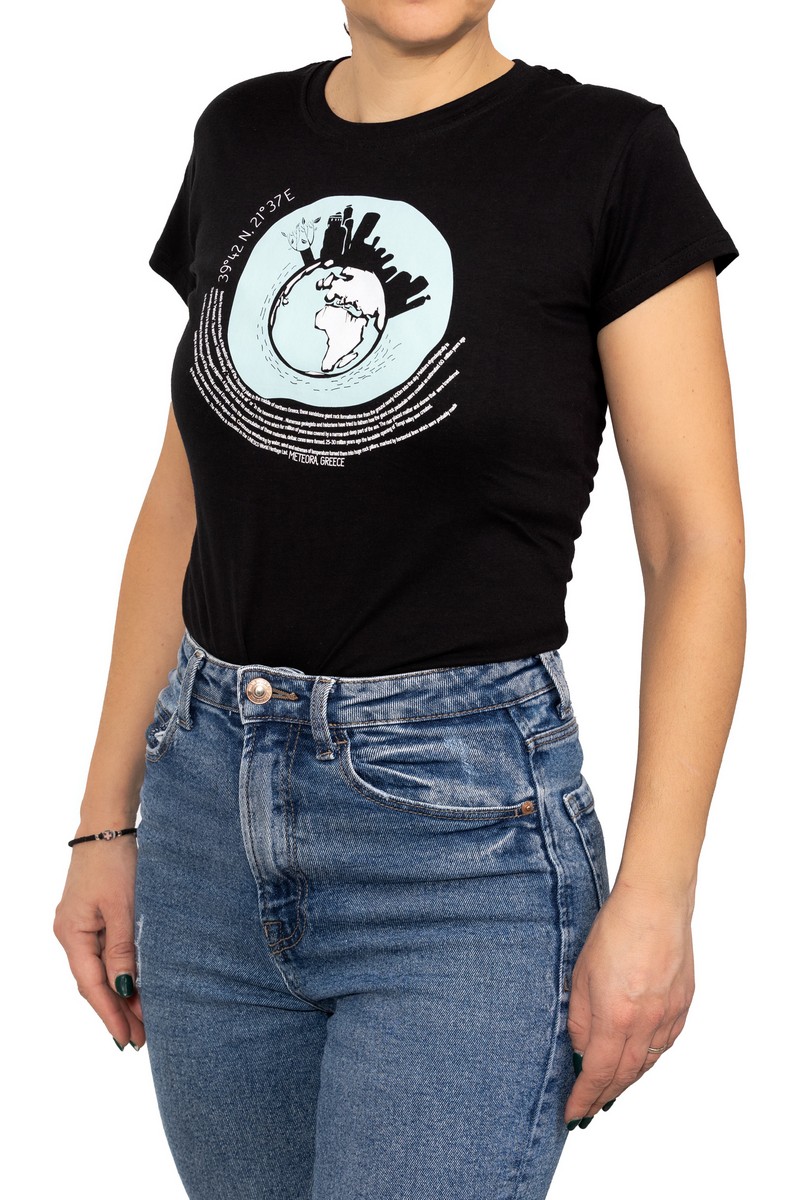 Γυναικείο t-shirt μαύρο με στάμπα μπροστά, Υδρόγειος. Από 100% βαμβάκι σε γυναικεία γραμμή. Σχεδιασμένο και εκτυπωμένο στην Ελλάδα